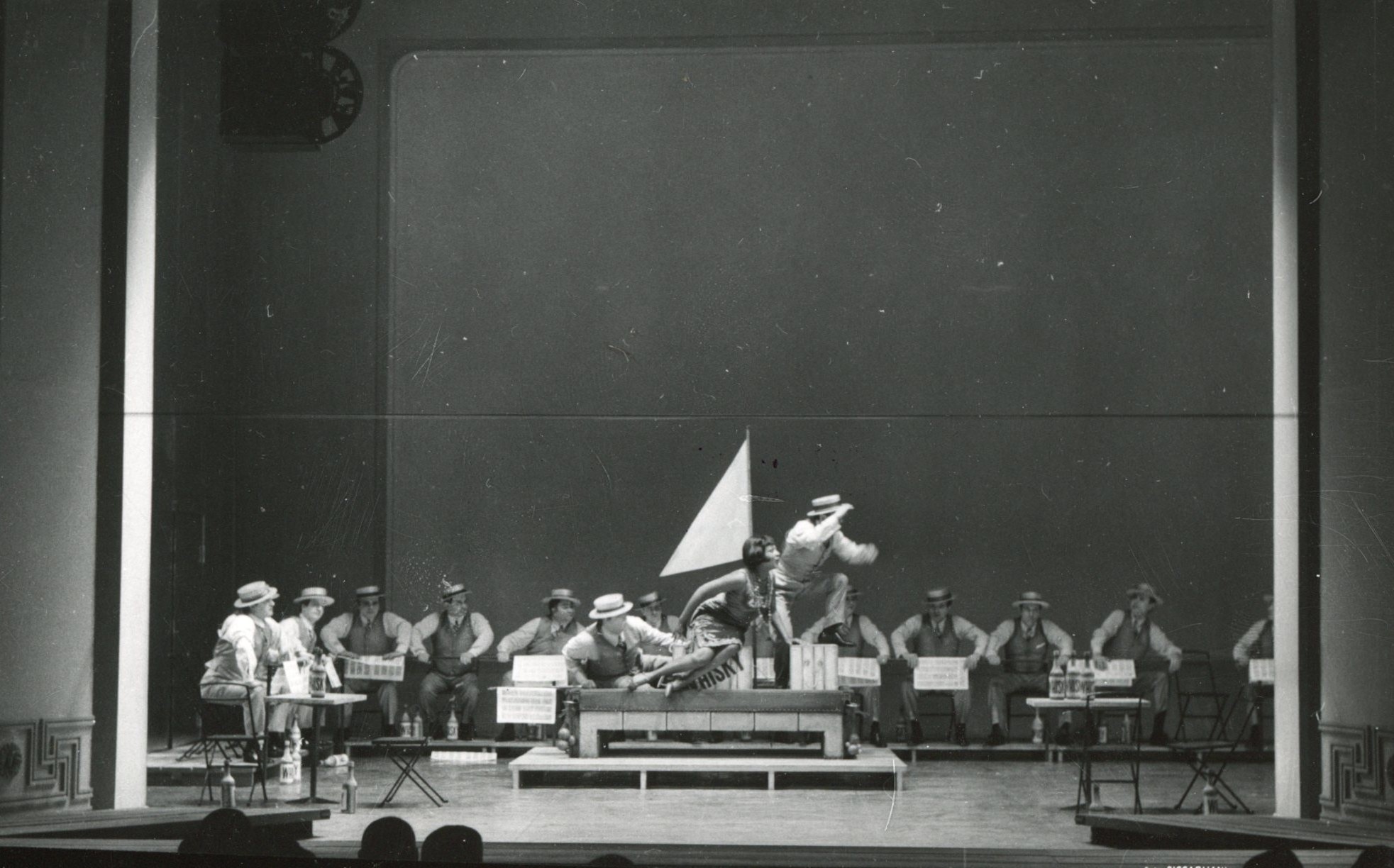 Foto di scena di Ascesa e caduta della città di Mahagonny nell'allestimento della Piccola Scala di Milano per la Stagione Lirica 1963-64 Regia di Giorgio Strehler. Scene e costumi di Luciano Damiani Foto Piccagliani Civico Museo Teatrale Carlo Schmidl Archivio Giorgio Strehler